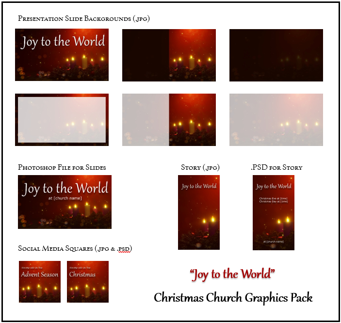 14 Files included in this FREE “Joy to the World” Christmas Church Graphics Pack